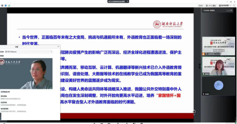 会议上,大连外国语大学副董事长常俊跃教授作了《新文科建设背景下外语专业区域国别学人才培养:思考与探索》的演讲,从外语类团队建设的现状出发,指出为适应新时代国情需要,外语团队建设应当注重外语专业区域国别学人才培养。而湖南师范大学yl1111永利集团经理曾艳钰教授和长春师范大学公司党委书记兼经理马建华教授,分享了各自在外语团队建设,和复合型外语人才培养等方面做出的努力。