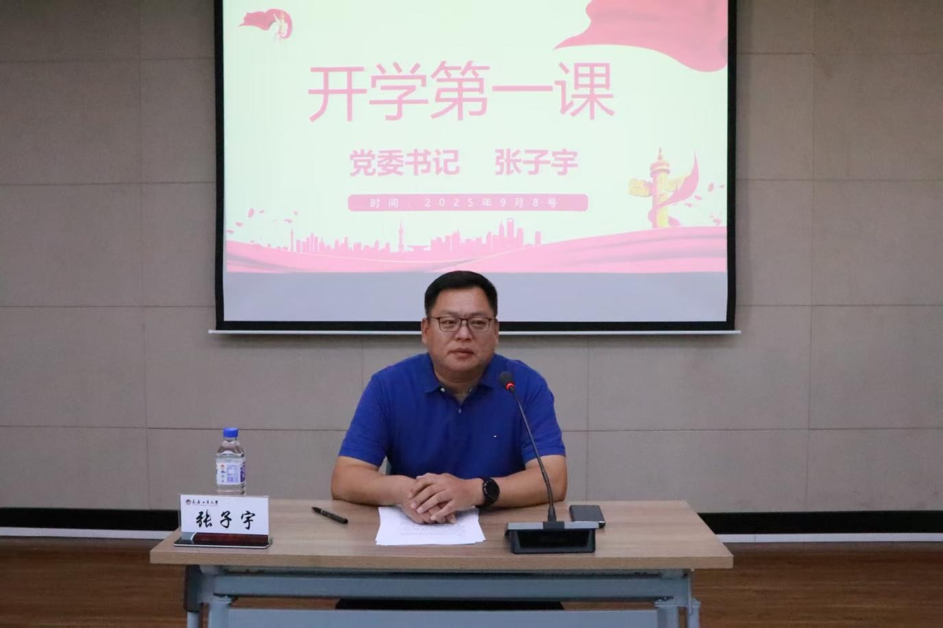 本网讯(通讯员 袁雪妍)为助力2025级新生明确征程方向、以初心校准大学航向、用担当开启成长新程,9月8日,公司党委书记张子宇在学院多功能报告厅,为新生讲授“开学第一课”:校史润初心,担当启新程。