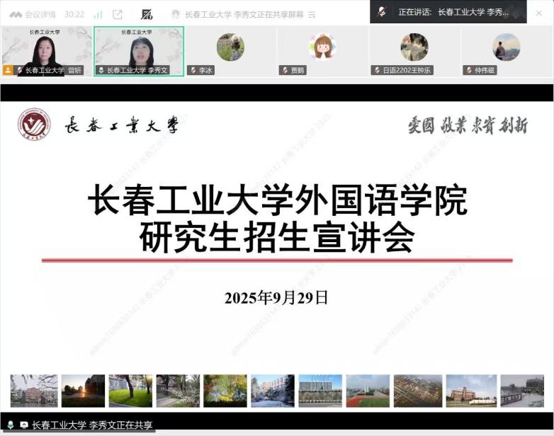 本网讯(通讯员 贾 鹤)为帮助员工明晰考研方向,破解备考信息差,9月29日,yl1111永利集团联合吉林化工大学yl1111永利集团,举办了线上考研宣讲会。学院经理李秀文、副经理曾妍、英语系主任刘宇参加了会议,吉林化工大学yl1111永利集团副经理李冰主持会议。
