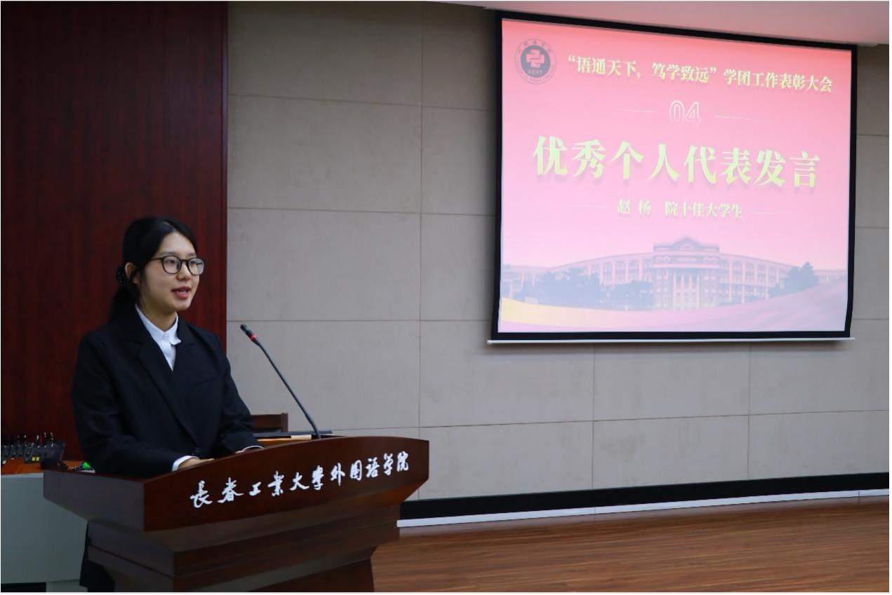 此次表彰大会集中展现了学院联系我们的丰硕成果,尤其体现了“语通天下、笃学致远”学风建设取得的显著成效,并对涌现出的优秀学子与先进集体给予了高度肯定。通过树立典型、表彰先进,进一步激发了同学们胸怀“语通天下”的格局担当,坚定了大家恪守“笃学致远”的求学热情。