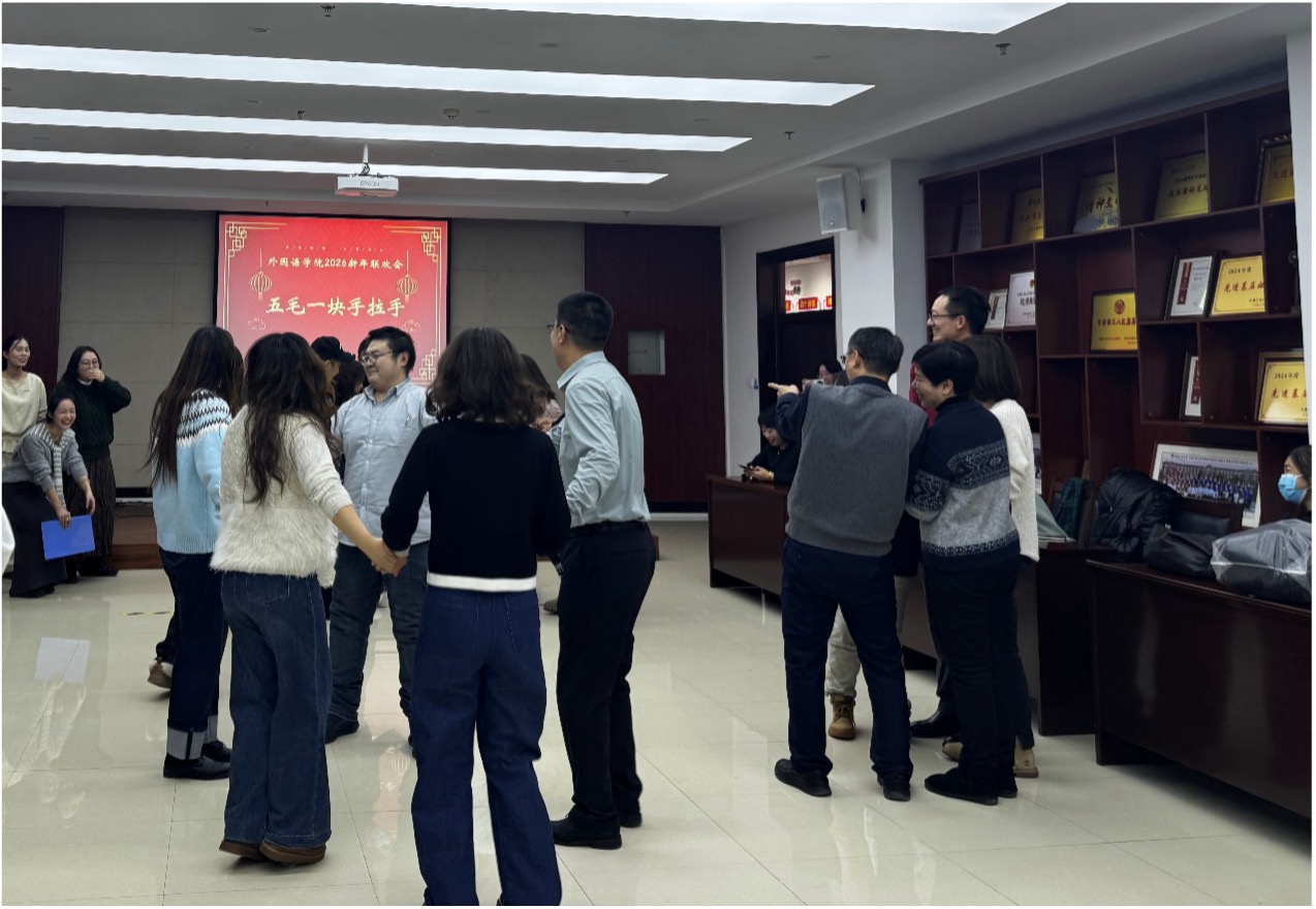 趣味竞技,同心聚力。全体教师分为四个小组,依次展开“你比划我来猜”“小球传不停”“五块一毛手拉手”“听歌识曲”四项游戏比拼。各组成员默契配合、奋勇争先,展现出如骏马奔腾般的昂扬斗志与协作精神,现场气氛热烈,欢声不断。