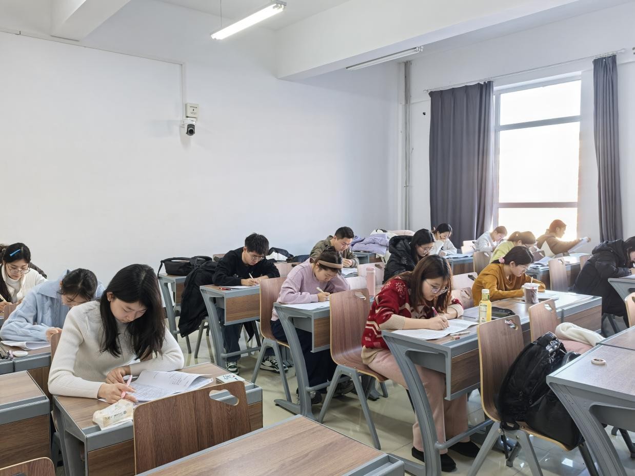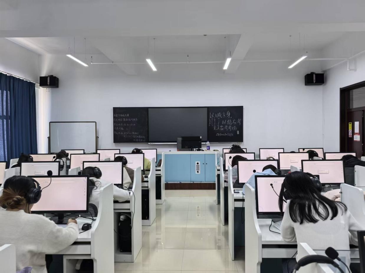 考试期间,考场内没有监考老师巡视,却始终保持着安静肃穆的氛围。同学们凝神审题、专注作答,笔尖在试卷上沙沙作响,时而低头思索,时而提笔书写,翻译题的精准措辞、阅读理解的细致分析、写作题的谋篇布局,每一个环节都展现着外院学子的专业素养与自律品格。学院通过视频监控实时保障考试公平,巡考人员每半小时进行一次场外巡查,全程未发现任何违纪作弊行为。
