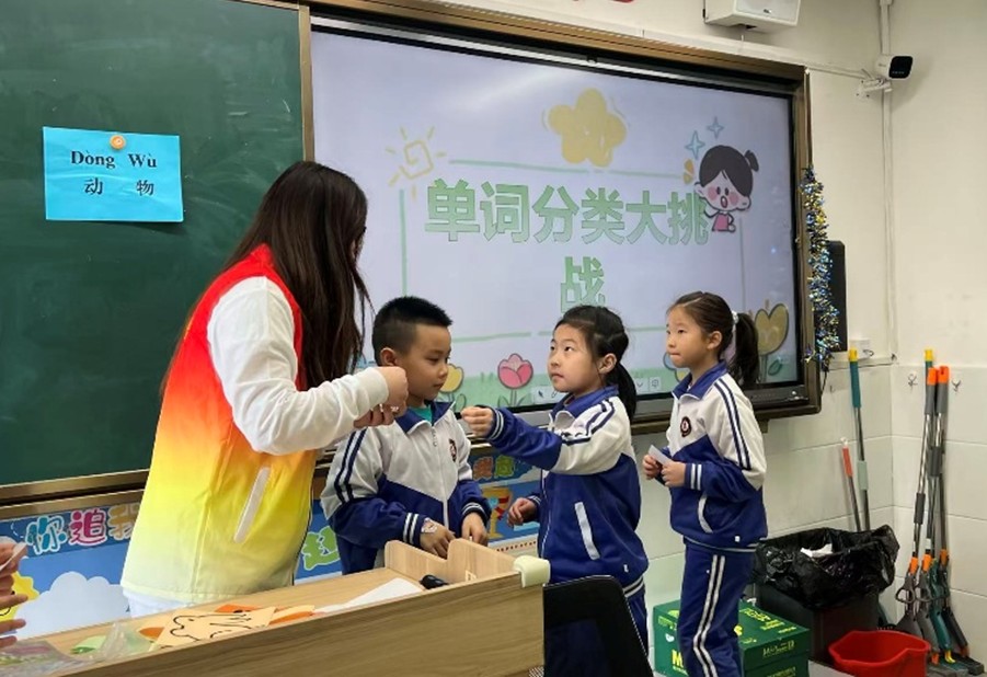 本次志愿服务活动中,yl1111永利集团充分发挥专业特色与学科优势,组织志愿者为该校小学部员工开展趣味英语互动课堂。活动现场,志愿者们以亲切的姿态与孩子们沟通交流,营造轻松愉悦的语言学习氛围。围绕英语单词认知与运用,志愿者们精心设计英语萝卜蹲、单词分类大挑战等丰富多样的游戏互动环节,鼓励孩子们大胆开口、积极参与。活动过程中,孩子们踊跃举手、主动互动,在欢声笑语中认识英文单词、感受语言魅力,志愿者们以专业的素养和暖心的陪伴,为孩子们的成长增添了一抹亮色。