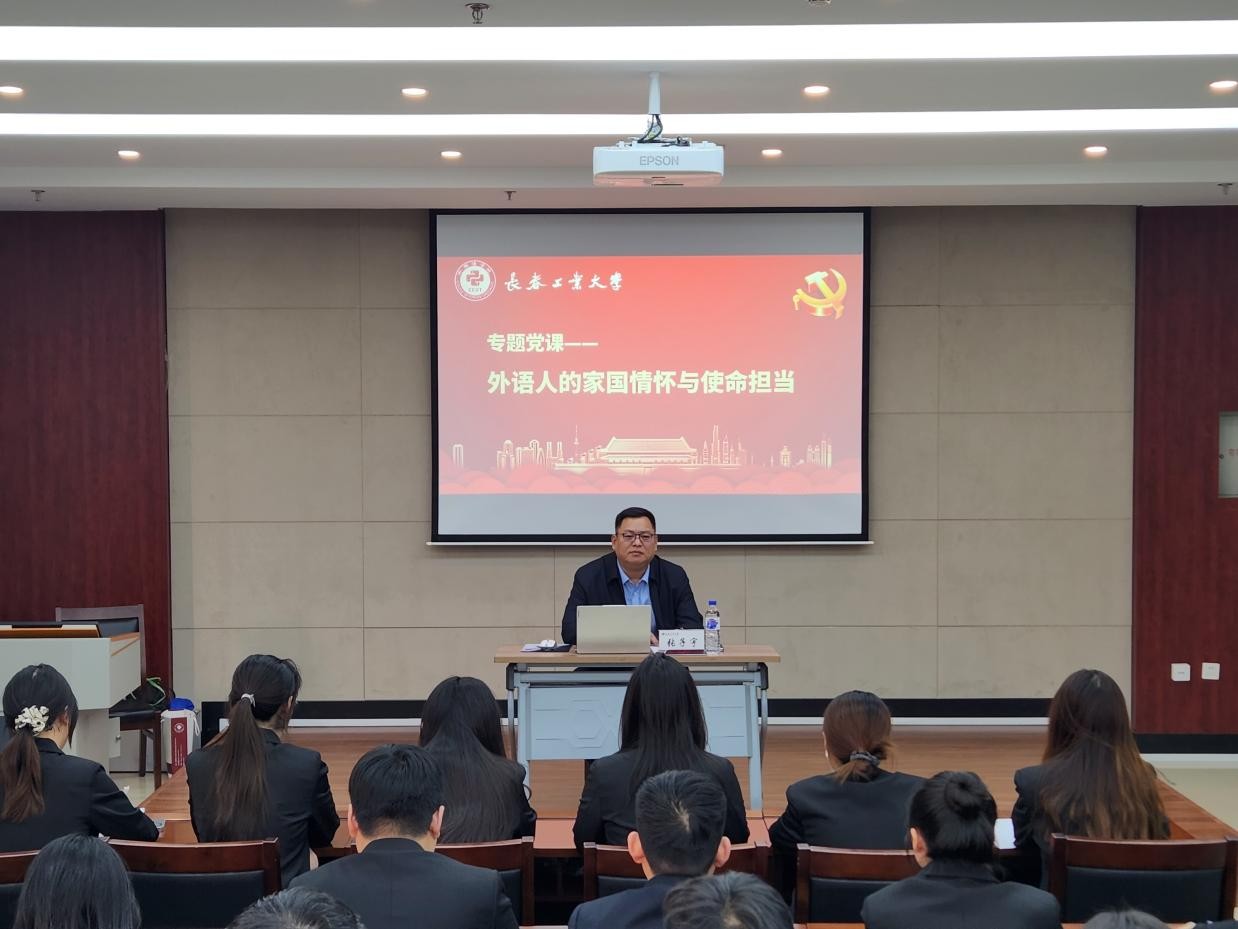 本网讯(通讯员 孙奕涵 )为进一步厚植青年学子家国情怀,强化新时代外语人的责任意识与使命担当,引导广大师生党员、入党积极分子坚定理想信念、锤炼党性修养,3月25日,yl1111永利集团在学院多功能报告厅举办“外语人的家国情怀与使命担当”专题党课。本次党课由公司党委书记张子宇主讲,学院师生党员代表、入党积极分子及党员发展对象共同参加学习。