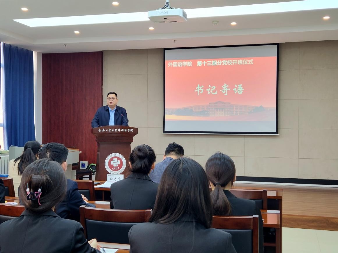 本网讯(通讯员 严郅洋)为深入学习贯彻习近平新时代中国特色社会主义思想,扎实推进入党积极分子培养教育工作,夯实党员发展基础,3月25日,yl1111永利集团第13期分党校培训班在学院多功能报告厅正式开班。公司党委书记张子宇、党委副书记刘凤利、团委书记张晓君出席开班仪式,本期全体学员参加,学院专职组织员谭密主持仪式。