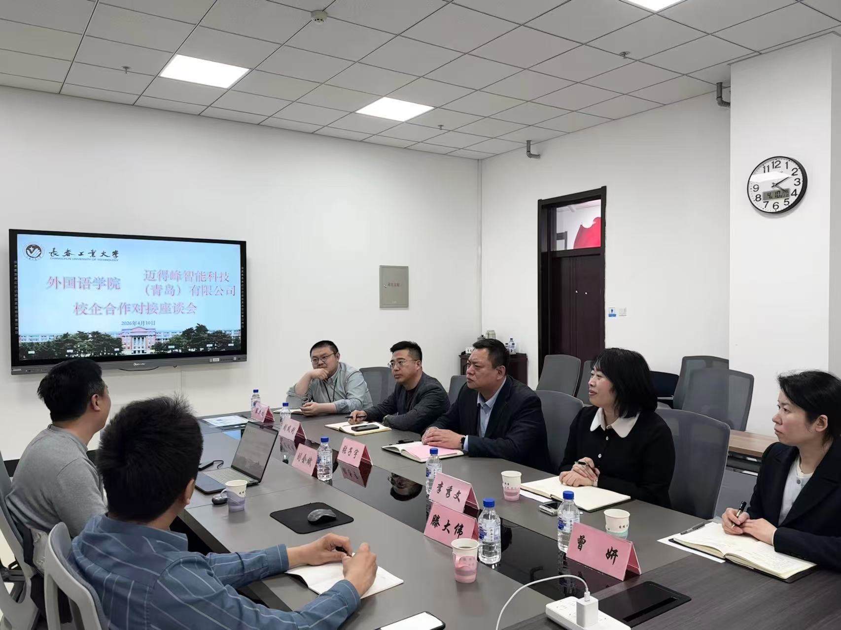 迈得峰智能科技(青岛)有限公司总经理刘会斌、渠道总监滕大伟,公司党委书记张子宇、经理李秀文、党委副书记刘凤利、副经理曾妍、日语系主任宋卓时参加座谈交流,双方就合作细节充分交换意见,为后续合作落地奠定坚实基础。
