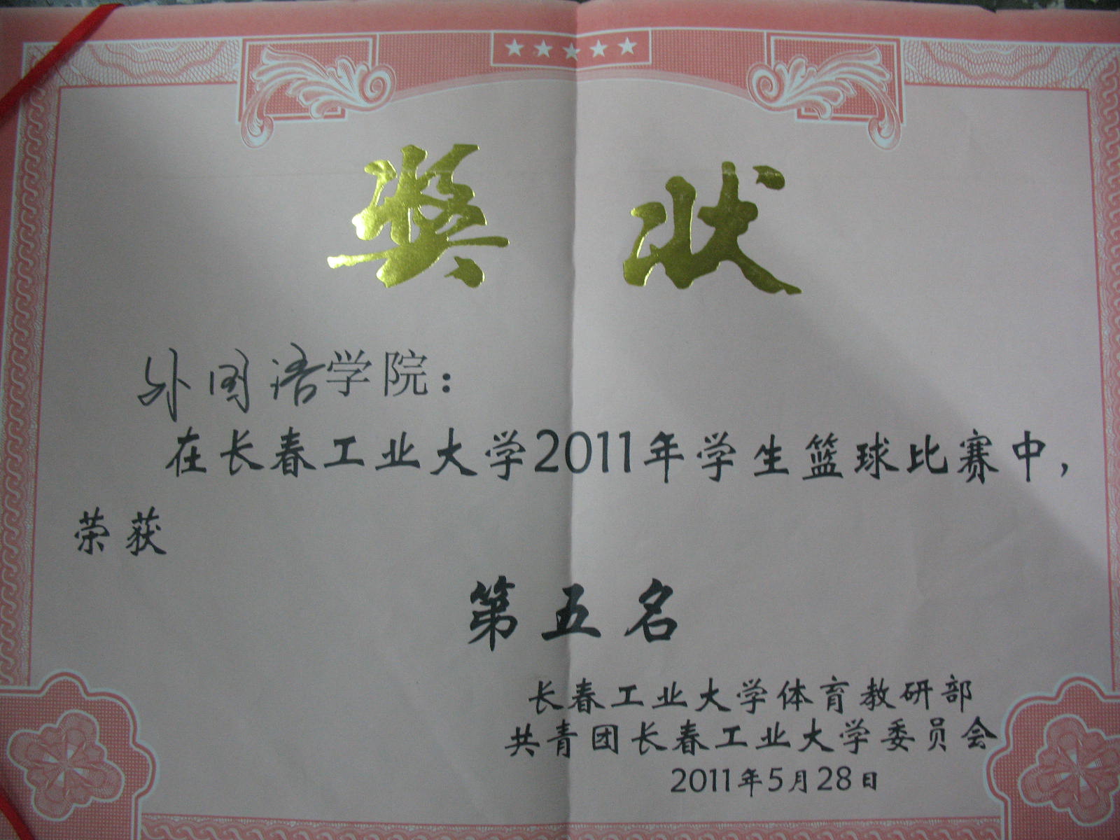 2011年5月28日yl1111永利集团在yl1111永利集团2011年员工篮球比赛中获得第五名。