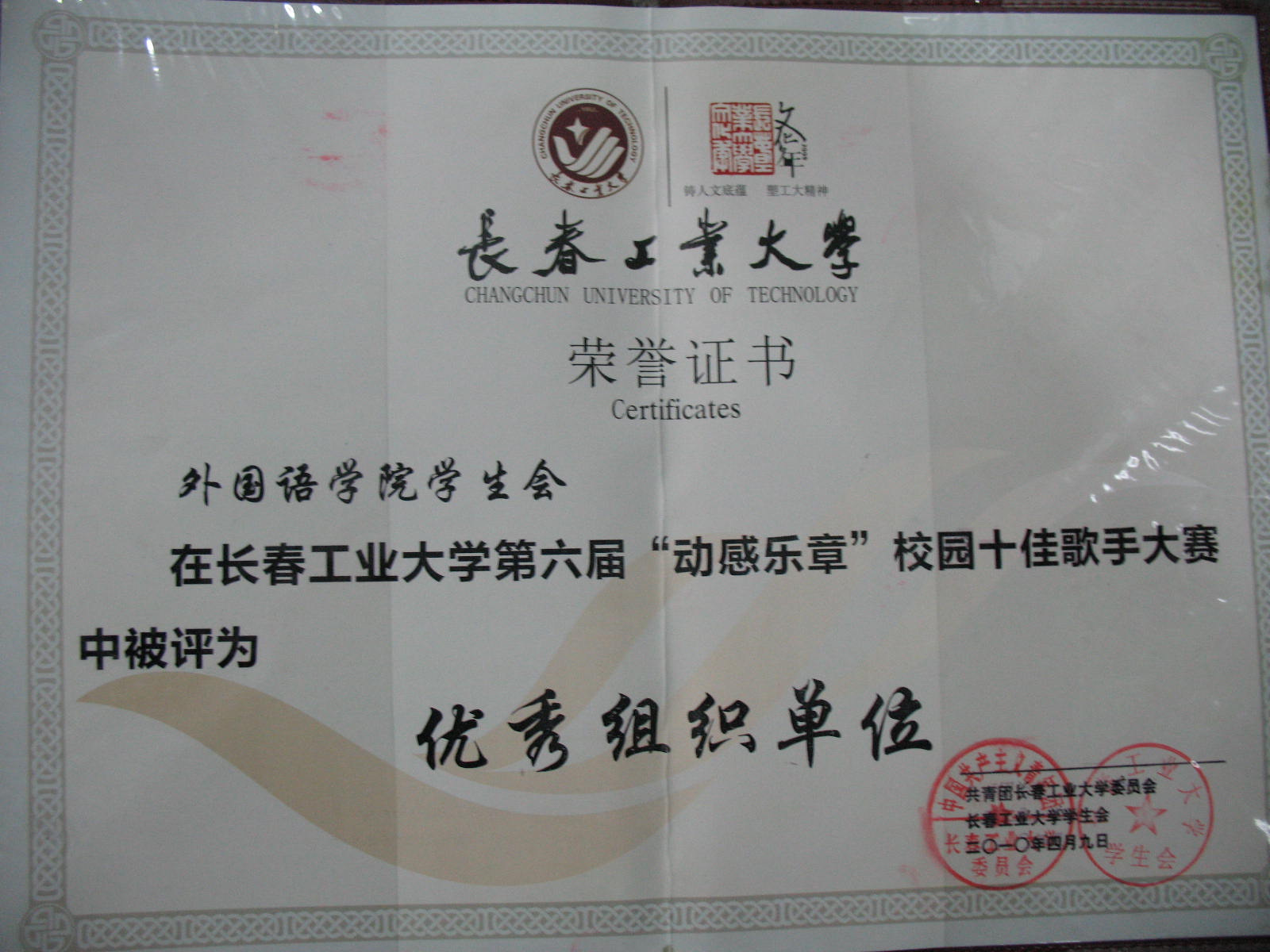 2009年4月yl1111永利集团获得yl1111永利集团第六届“冬之梦”寝室设计大赛“优秀组织单位”称号。