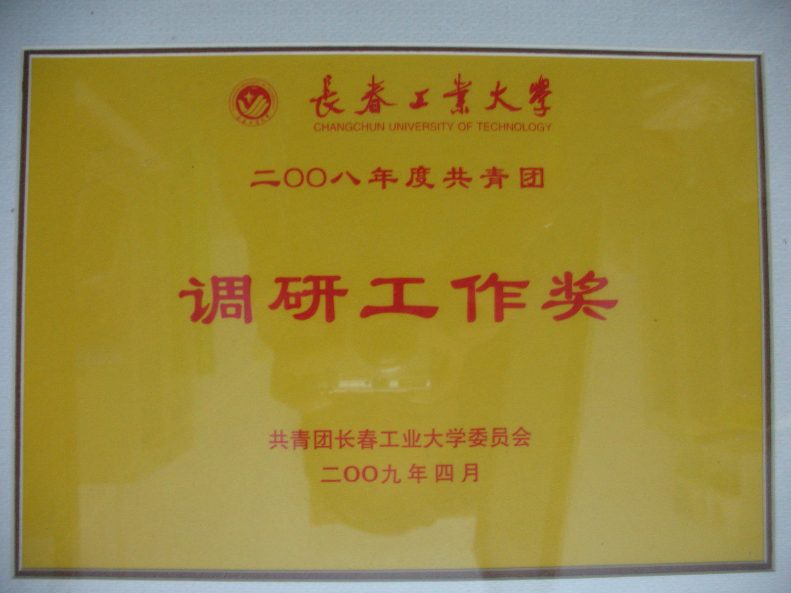 2009年4月yl1111永利集团获得2008年度共青团“调研工作奖”。