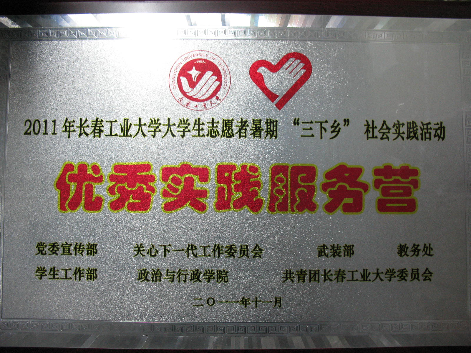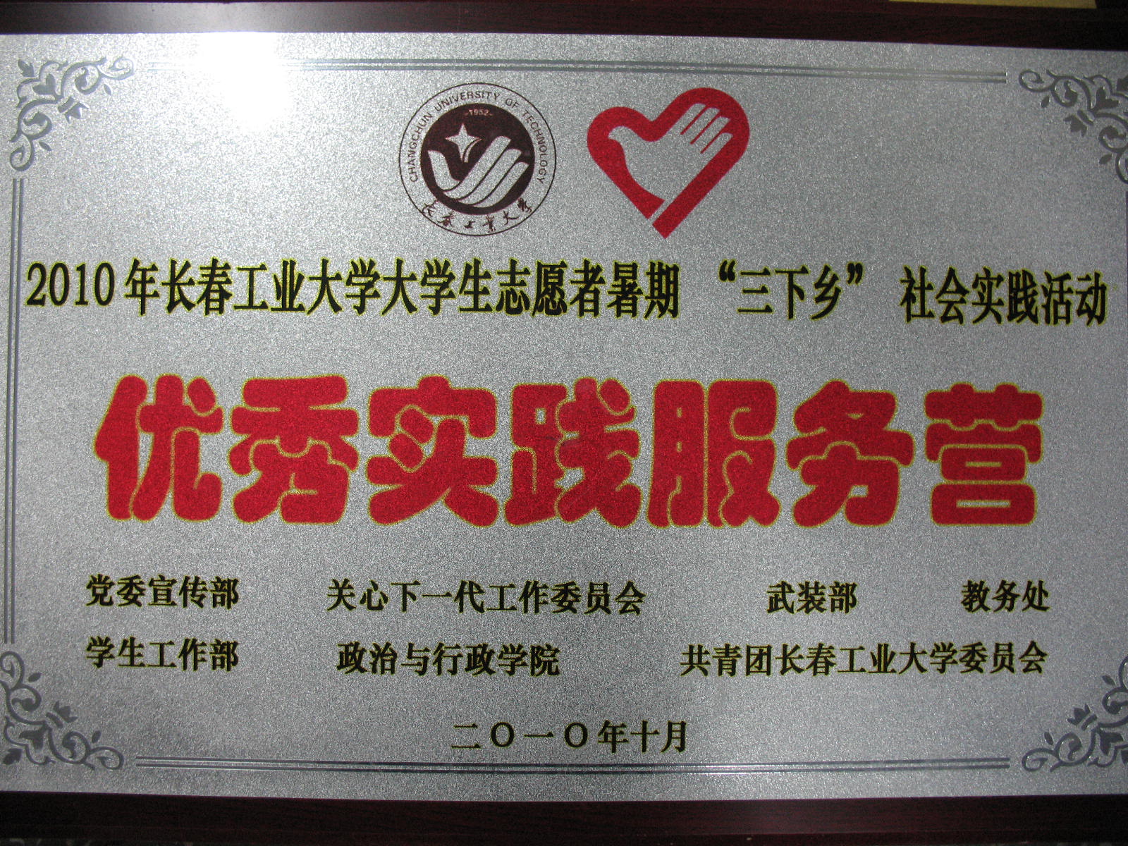 2010年10月yl1111永利集团分团委在 2010年度yl1111永利集团老员工志愿者暑期“三下乡”社会实践活动中获得“优秀实践服务营”称号。
