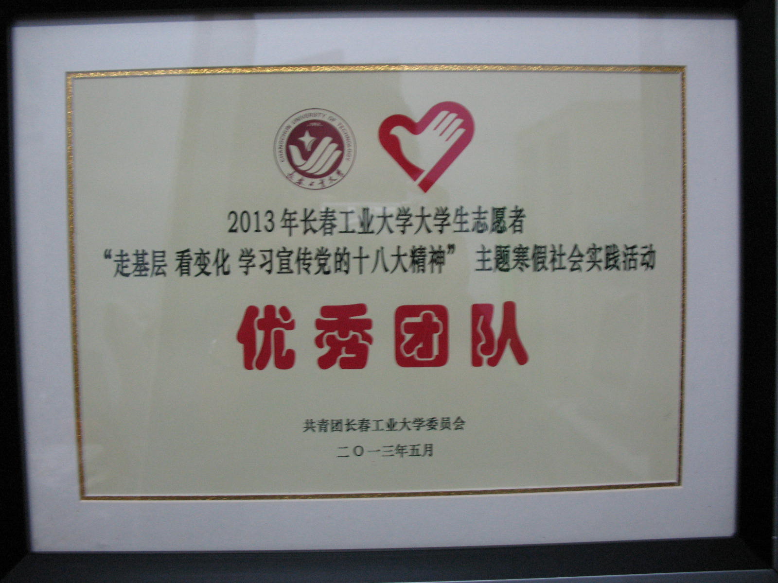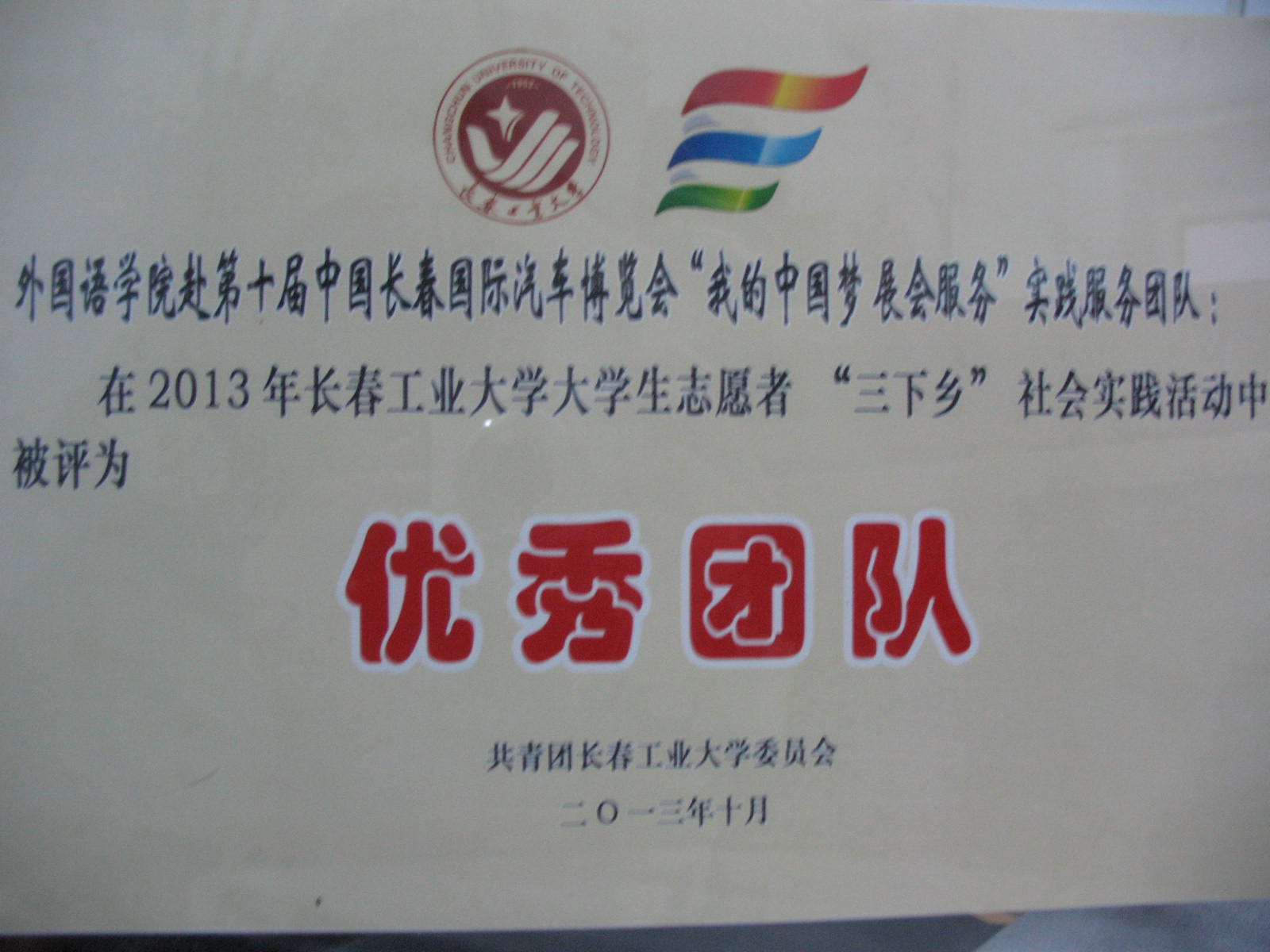 2013年10月yl1111永利集团赴第十届中国长春国际汽车博览会“我的中国梦展会服务”实践服务团队在2013年yl1111永利集团老员工志愿者暑期“三下乡”社会实践活动中被评为“优秀团队”。