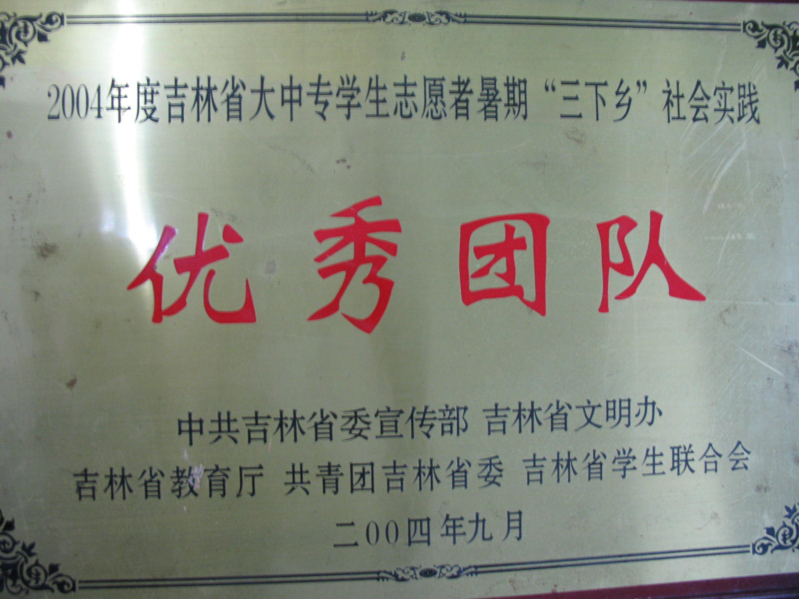 2004年9月yl1111永利集团分团委在 2004年度吉林省大中专员工志愿者暑期“三下乡”社会实践活动中获得“优秀团队”称号。