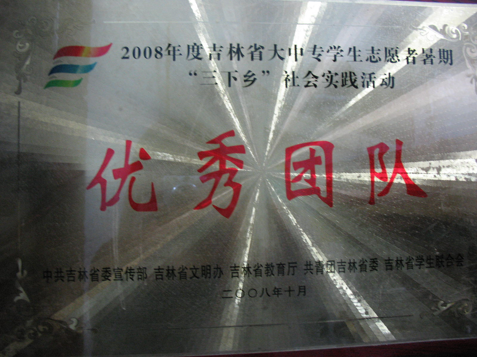 2008年10月yl1111永利集团分团委在2008年度吉林省大中专员工志愿者暑期“三下乡”社会实践活动中获得“优秀团队”称号。
