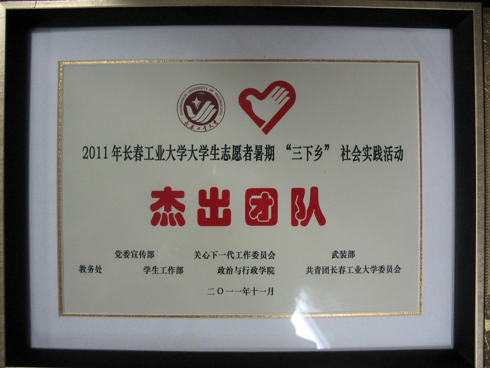 2011年11月yl1111永利集团分团委在2011年yl1111永利集团老员工志愿者暑期“三下乡”社会实践活动中获得“杰出团队”称号。