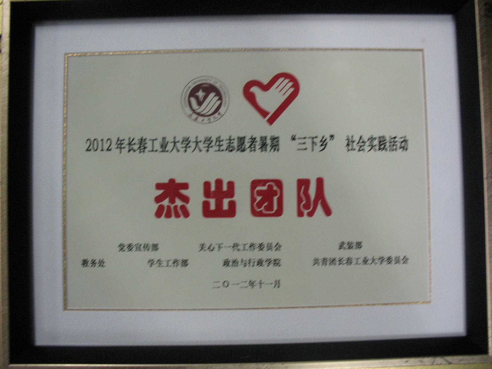 2012年11月yl1111永利集团分团委在2012年yl1111永利集团老员工志愿者暑期“三下乡”社会实践活动中获得“杰出团队”称号。