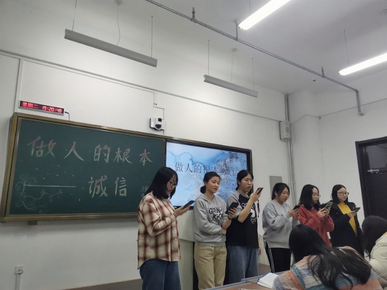 191001班刘筱雪同学认真讲述失信案例,同学们认真聆听,积极学习,从案例中汲取经验教训。