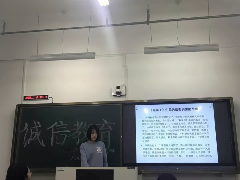 191006班高佳琪同学带领同学从员工守则,法律等角度理解诚信内涵,呼吁同学传承文明,践行美德,诚信为本。