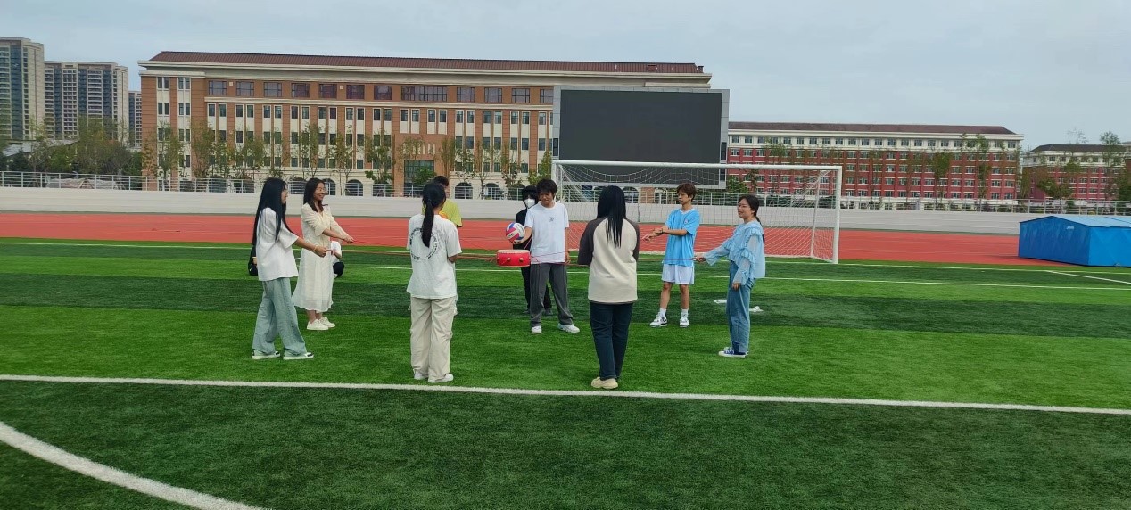 一鼓一球,牵动人心。一推一拉,击鼓颠球。同学们凝心聚力,专注无比,脚步也随着鼓点轻快地移动着......