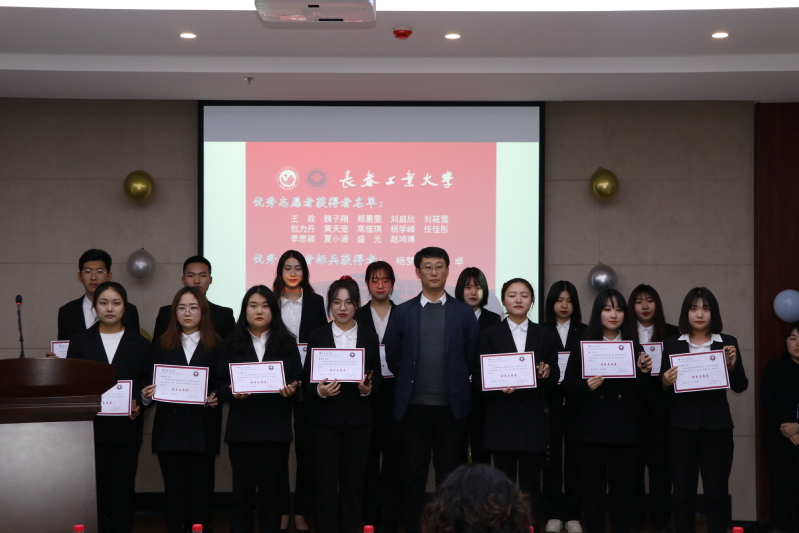 换届大会后,对2020年抗疫优秀志愿者进行表彰,党委副书记王颖群为梁卓,杨梦雪两位优秀志愿者标兵颁奖,团委书记朱博、员工党支部书记刘明慧,为王政,高佳琪等十四名优秀志愿者颁奖。