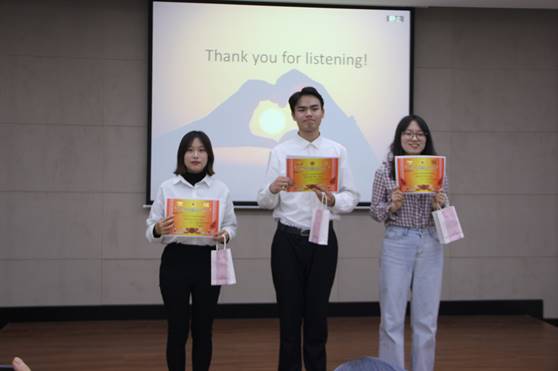 英语系系主任刘宇老师,外籍教师David,Julia和AJHu担任此次演讲比赛的评委。美籍教师Danie、外研社国才杯比赛省级二等奖获得者殷浩然同学担任主持此次演讲比赛。