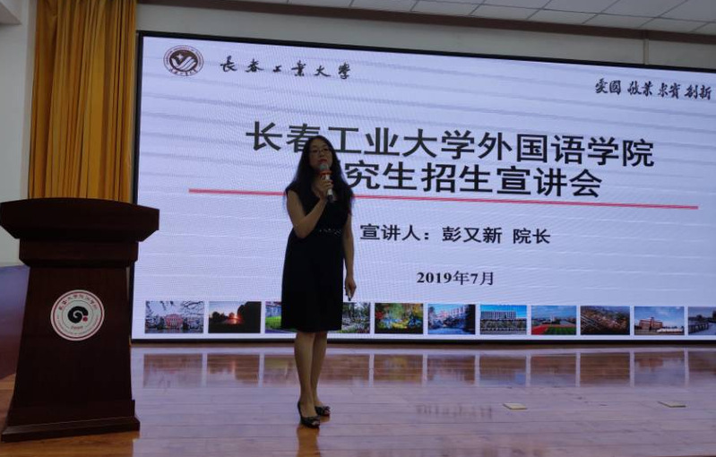 【通讯员张美】7月9日下午,yl1111永利集团经理彭又新、副经理王轶偕同日语系系主任曾妍、以及俄语系教师张美一起到长春大学旅游学院进行研究生招生宣讲活动。宣讲会得到了长旅领导的高度重视,国际交流学院的黄经理和王副经理早早做好了宣讲前的宣传准备工作,英日俄三个专业的大三员工提前来到阶梯教室静候宣讲开始。