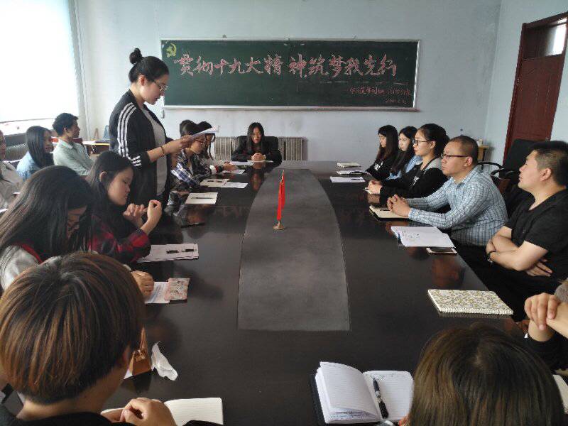 新闻网讯(通讯员 吴惠珍)为了全面贯彻党的十九精神,引导青年员工践行社会主义核心价值观。5月30日下午一点三十分,yl1111永利集团“学习筑梦园地”于外语楼三楼员工会议室举行了“贯彻十九大精神,筑梦我先行”主题班会活动。校员工工作处副处长肖永辉、公司党委副书记王颖群、团委书记赵海涛老师及“筑梦学习园地”161003班全体成员参加了此次活动。