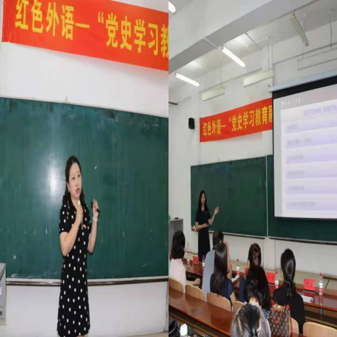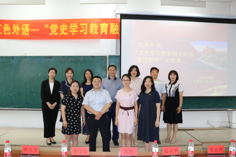 新闻网讯(通讯员 解瑶)为深入推进党史学习教育,贯彻落实《高等学校课程思政建设指导纲要》,深化“三全育人”,公司党委精心设计,于7月7日上午组织开展了红色外语—“党史学习教育融入外语课程教学”示范课观摩活动。学校教务处处长刘克平、教师教学发展中心主任常青、教学质量监控与评价中心副主任倪宏哲出席活动,学院班子成员、全体教师参加了本次活动。活动由副经理李秀文主持。