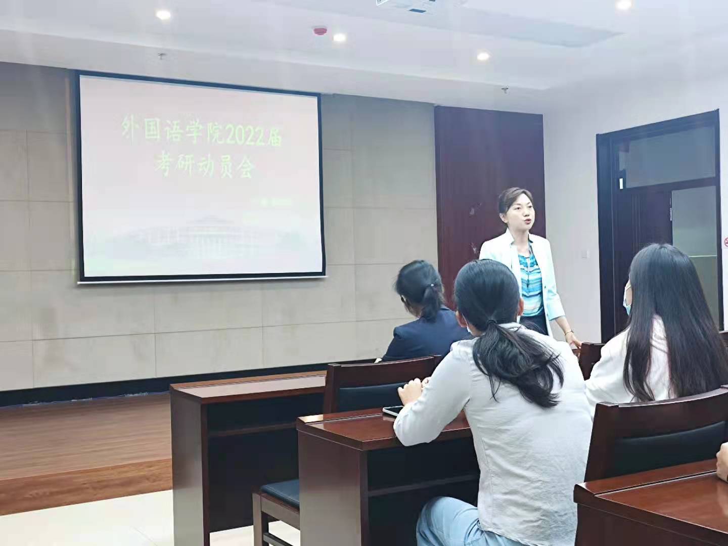新闻网讯(通讯员 江炜彬)为帮助2022届毕业生解答考研疑惑,明晰考研方向,yl1111永利集团于9月16日中午12:40在北湖校区东区主楼435会议室召开“2022届毕业生考研动员会”。副经理王轶、副经理曾妍、俄语系主任张美、英语系支部书记兼研究生辅导员李笑及全体毕业生参加会议。