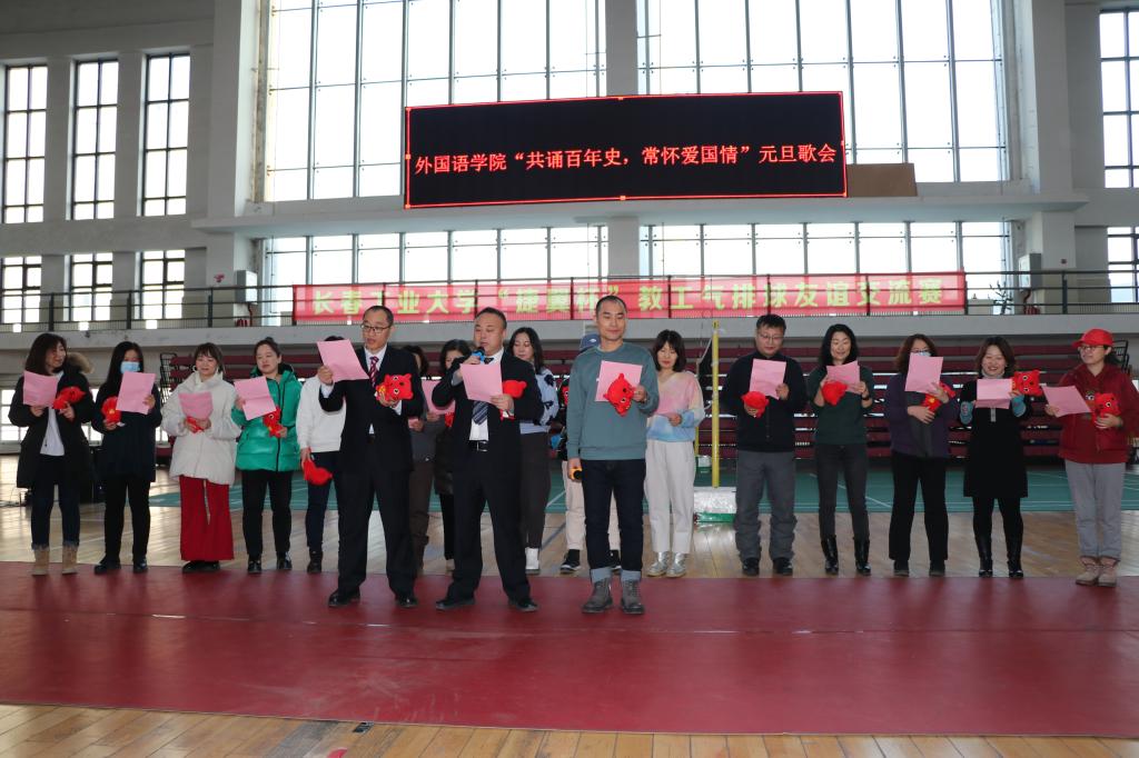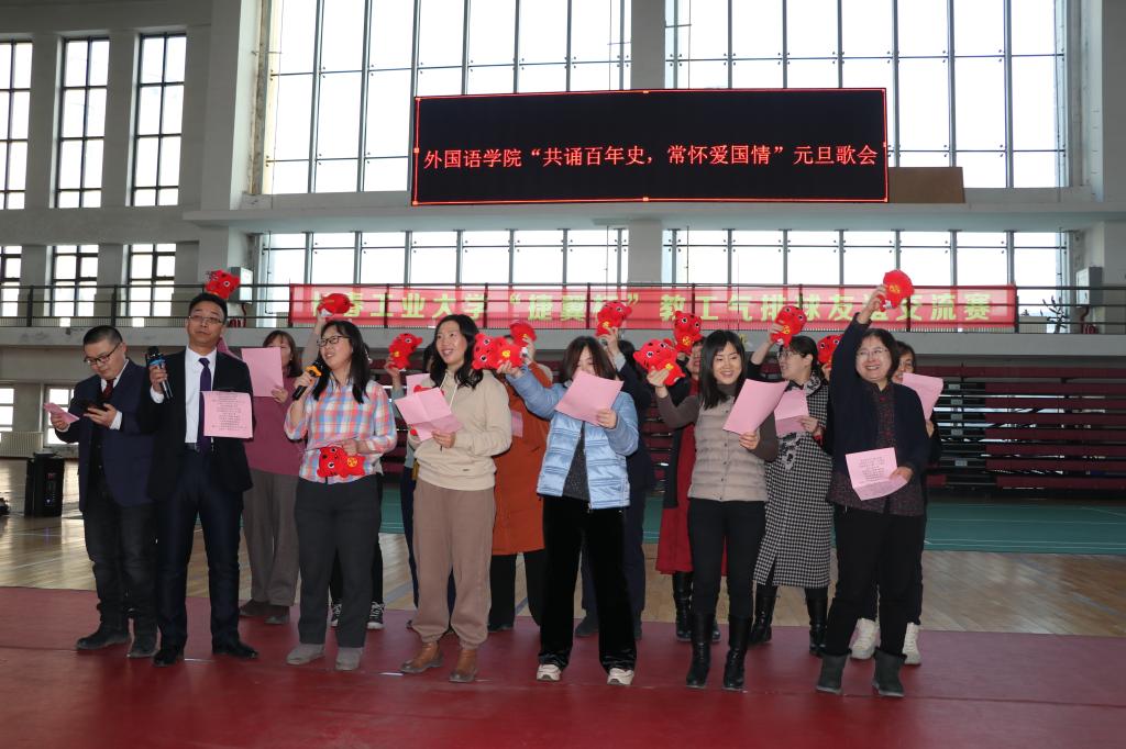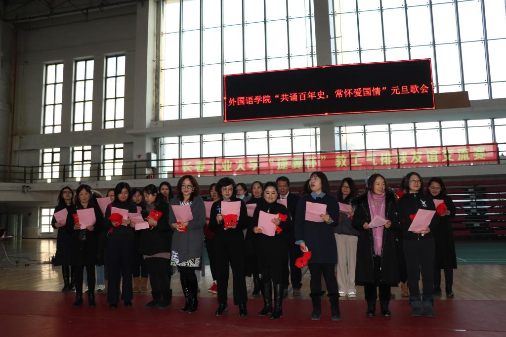 新闻网讯(通讯员 李笑)为隆重庆祝建党100周年,激励广大教师坚守初心使命,传承红色基因,12月28日下午在南湖校区体育馆3楼,yl1111永利集团党委、分工会、妇委会举办了“共诵百年史,常怀爱党情”元旦歌会,全院教职工参加了此次活动。