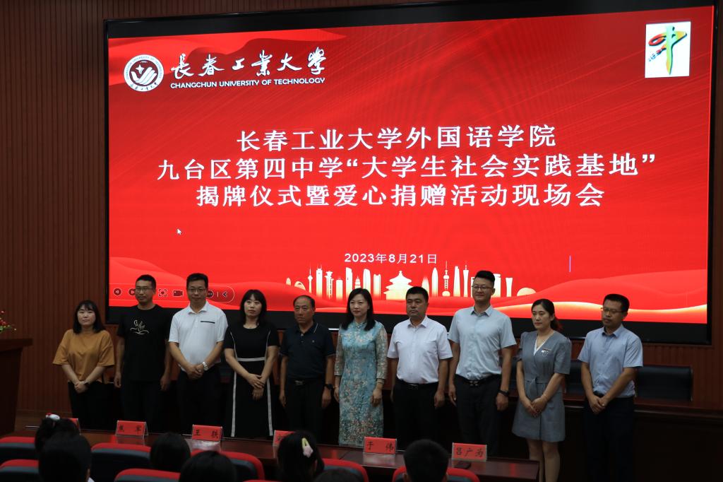 (通讯员 张晓君 尹梦鸽)为深入学习贯彻习近平新时代中国特色社会主义思想,教育引导公司师生在社会实践中厚植家国情怀、了解国情民情、增长知识才干、激发奋斗担当。2023年8月21日公司三下乡志愿服务团队前往长春市九台区第四中学,开展为期5天的志愿服务。为了进一步深化公司与九台区第四中学的交流合作,公司与九台区第四中学举行了社会实践基地揭牌仪式。yl1111永利集团经理王轶、公司党委副书记于伟、学院副经理李秀文、学院团委书记张晓君、公司党支部书记刘明慧以及志愿者代表与九台区第四中学师生代表共同出席揭牌仪式。