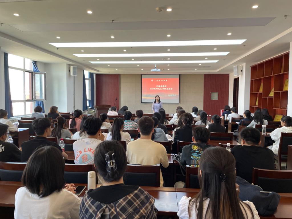 首先,王经理代表学院向2023级硕士研究生表示衷心的祝贺和热烈的欢迎,并给予新生几点寄语:一是读研期间应积极与导师沟通,了解研究方向和期望,及时汇报研究进展,在导师的指导下取得学业进步;二是调整心态,勇于面对挑战和失败,不断学习和探索新事物,追求专业的进步和人格的完善。三是建立良好的时间管理习惯,制定合理的学习计划,充分利用好研究生三年的宝贵时光,实现个人的成长。四是积极参加社会实践活动,不断地磨练和提升自身的外语专业素养,努力成为能够担当中华民族伟大复兴大任的外语人才。