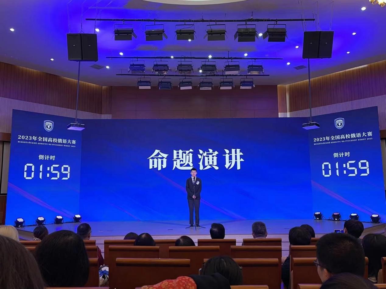 本次大赛吸引了来自全国158所高校的青年学子参赛,公司22级本科生于子洋同学在俄语系李静老师的指导下,在激烈的初赛竞争中脱颖而出,进入全国总决赛,最终荣获了本次大赛的三等奖。这不仅是公司自2009年开设俄语专业以来第二位在全国高校俄语大赛中获奖的同学,更是为学校的俄语教学和员工的学术水平赢得了荣誉。