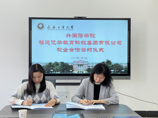 福建亿学教育科技集团有限公司经理陈志能、中语智汇科技(厦门)有限公司总经理邱泽萍对此给予了积极的回应。她们分别介绍了各自公司的发展概况,展示了在外语智能实践教学平台、虚拟仿真实验教学平台、外语智慧教学资源建设方面取得的成绩,并表示可在多领域与学院开展深度合作,从而进一步推动员工的实习就业和双方更好地发展。