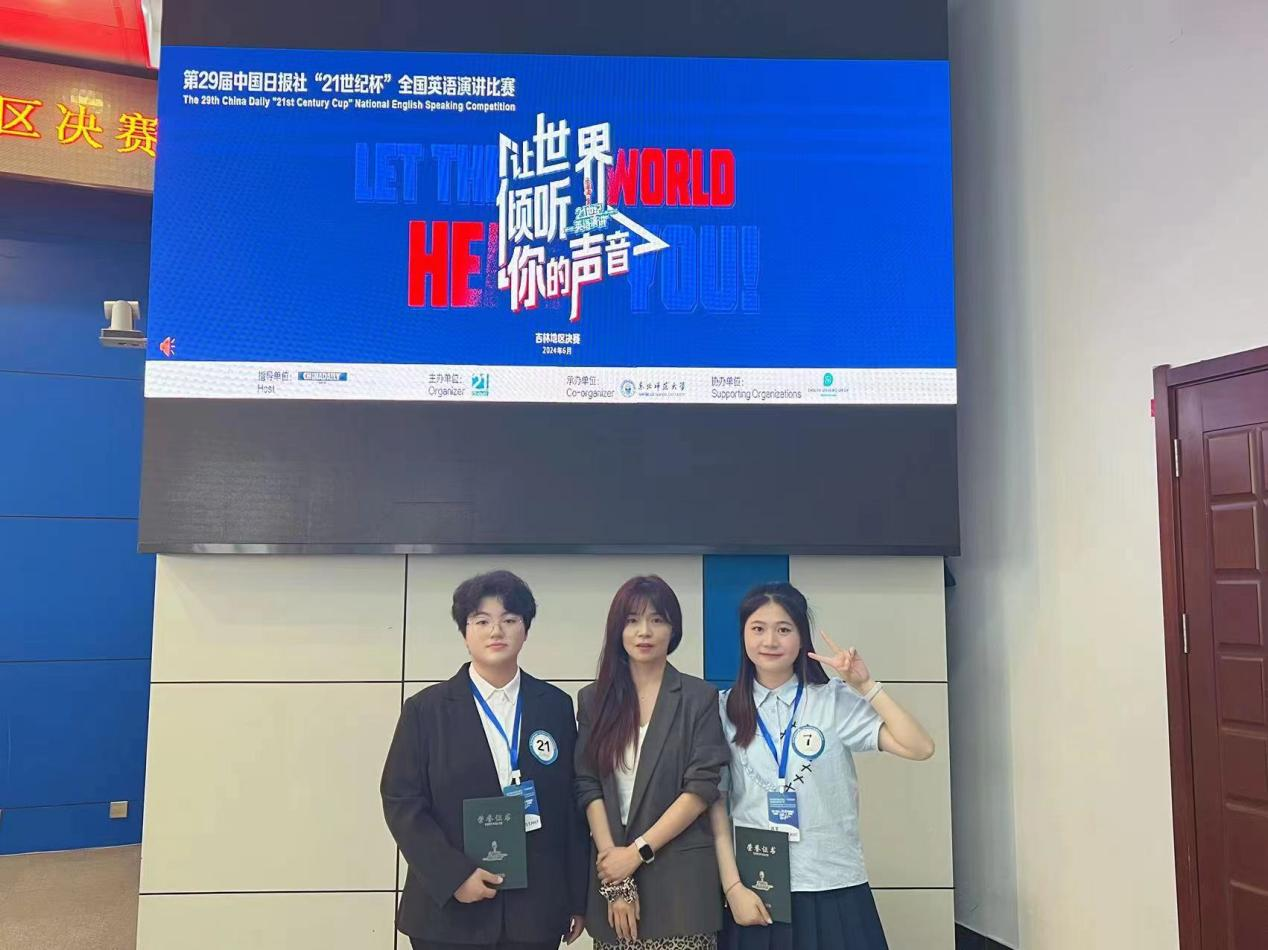 本网讯(通讯员 佐冰冰)6月2日,第29届中国日报社“‘21世纪杯’全国英语演讲比赛”吉林地区决赛及颁奖典礼在东北师范大学就业指导中心成功举办。来自吉林省12所高校的23名选手同台竞技。公司数学与统计学院大一员工时思颖和公共管理学院大三员工李洁在指导教师yl1111永利集团佐冰冰老师的陪同下,代表yl1111永利集团参加了本次省决赛,经过激烈角逐,最终时思颖获得省决赛二等奖,李洁获得省决赛三等奖,时思颖将代表公司参加全国半决赛。