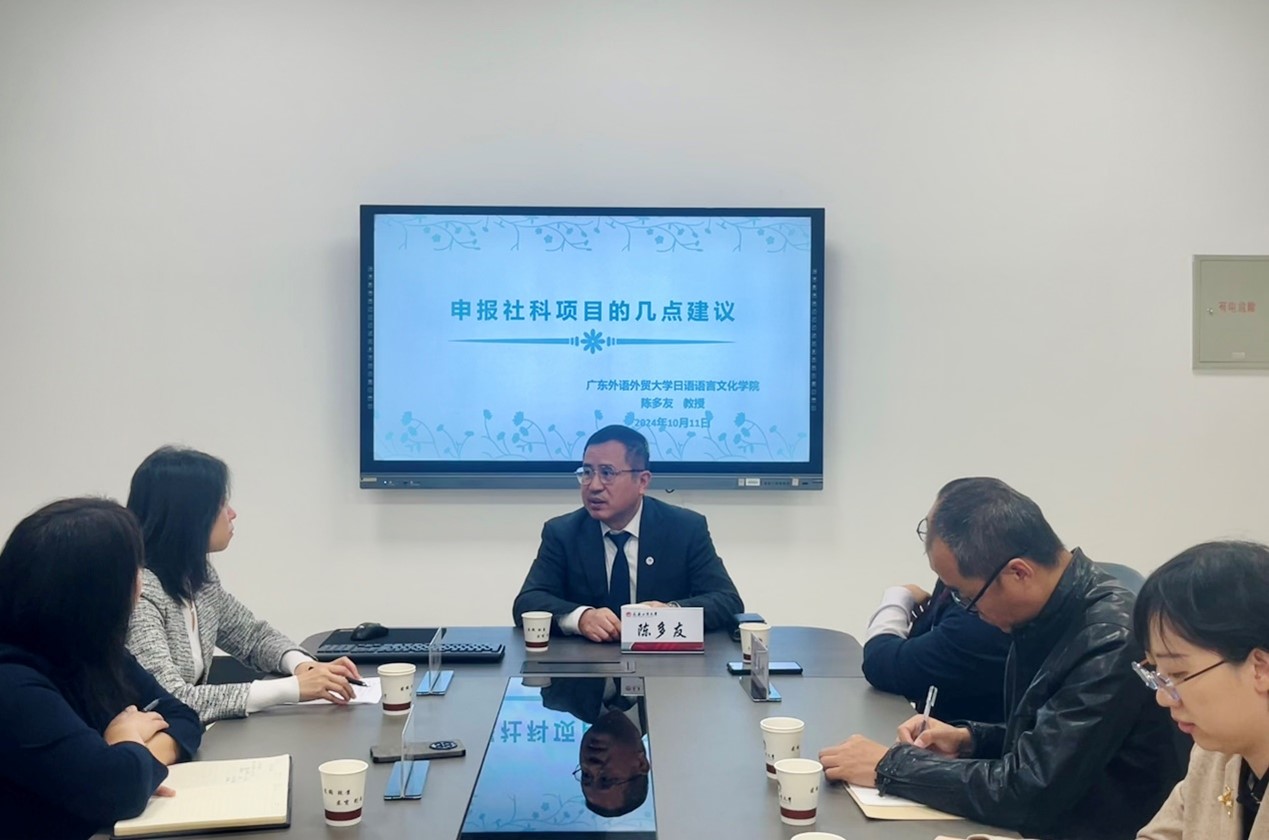本网讯(通讯员 贾鹤)为提升yl1111永利集团青年教师的科研能力和社科项目申报质量,10月11日上午,学院特邀广东外语外贸大学博士生导师陈多友教授为学院青年教师作了题为“申报社科项目的几点建议”的学术讲座,yl1111永利集团副经理李秀文、曾妍、日语系主任及学院部分青年教师参加了此次学术讲座。