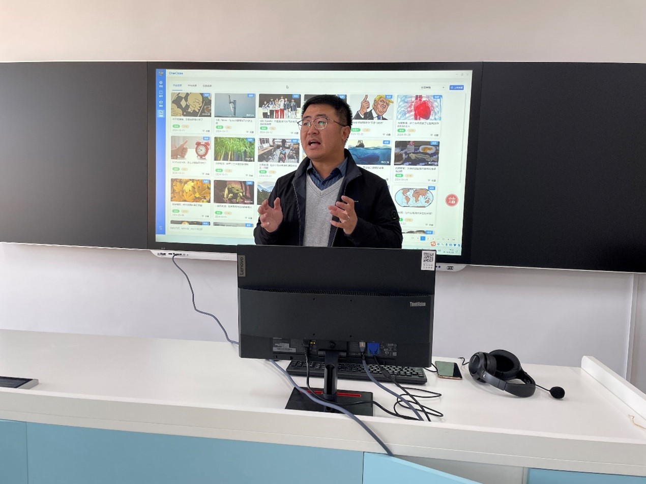 然后,辽宁一课科技有限公司讲师金钊为公司教师讲解了“OneClass外语教学系统”的使用方法,以及该系统如何辅助教师进行外语听力、同声传译、交替传译等课程教学。