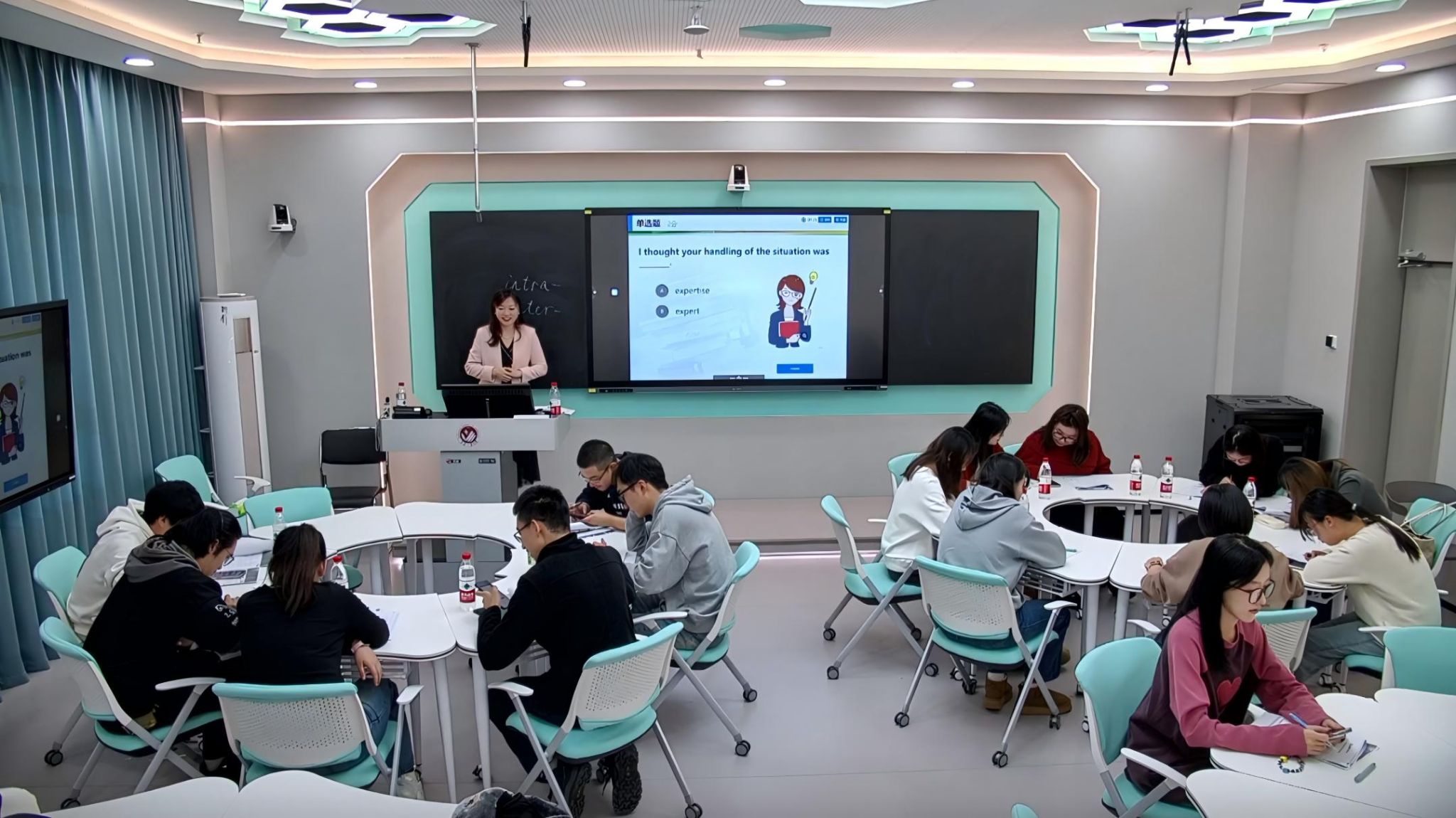 活动现场,教师们充分利用现代化教学手段,或激扬文字、精彩板演,或连珠妙语、娓娓道来,充分展示了她们的专业素养和应变能力,充分展现了教师积极进取、从容自信的精神风貌。