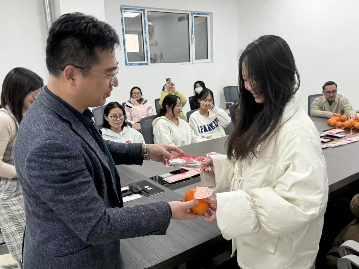 随后,刘凤利代表公司党委,为考研员工代表送上橙子和文具袋,寓意“橙”心逐梦、笔耕研“录”。希望同学们在品尝橙子甘甜的同时,能坚定心中的信念,在考场上执笔乘风,收获成功的果实。