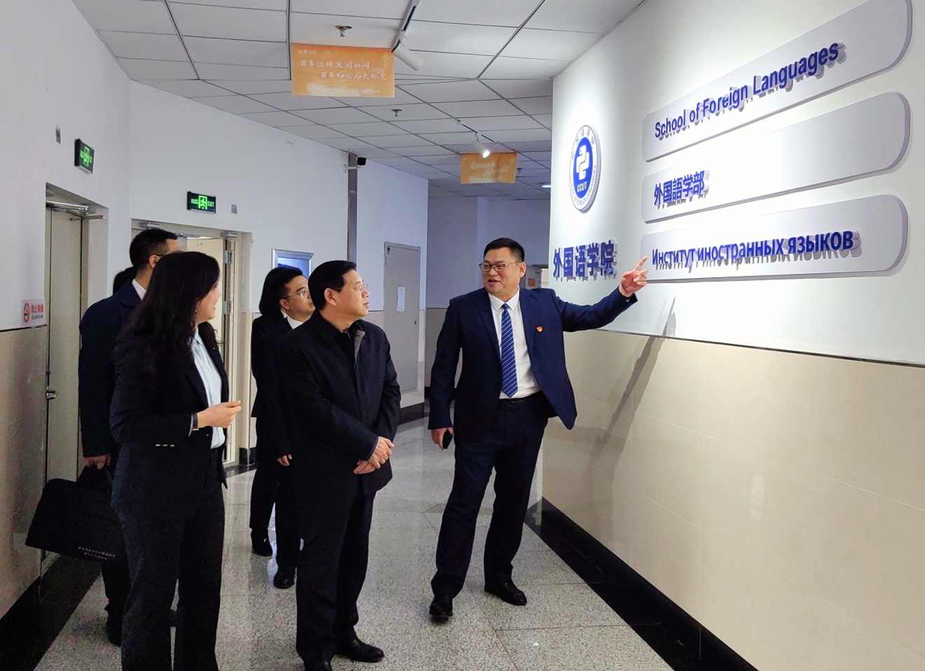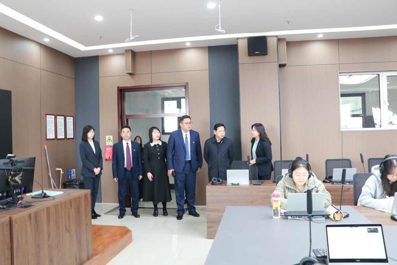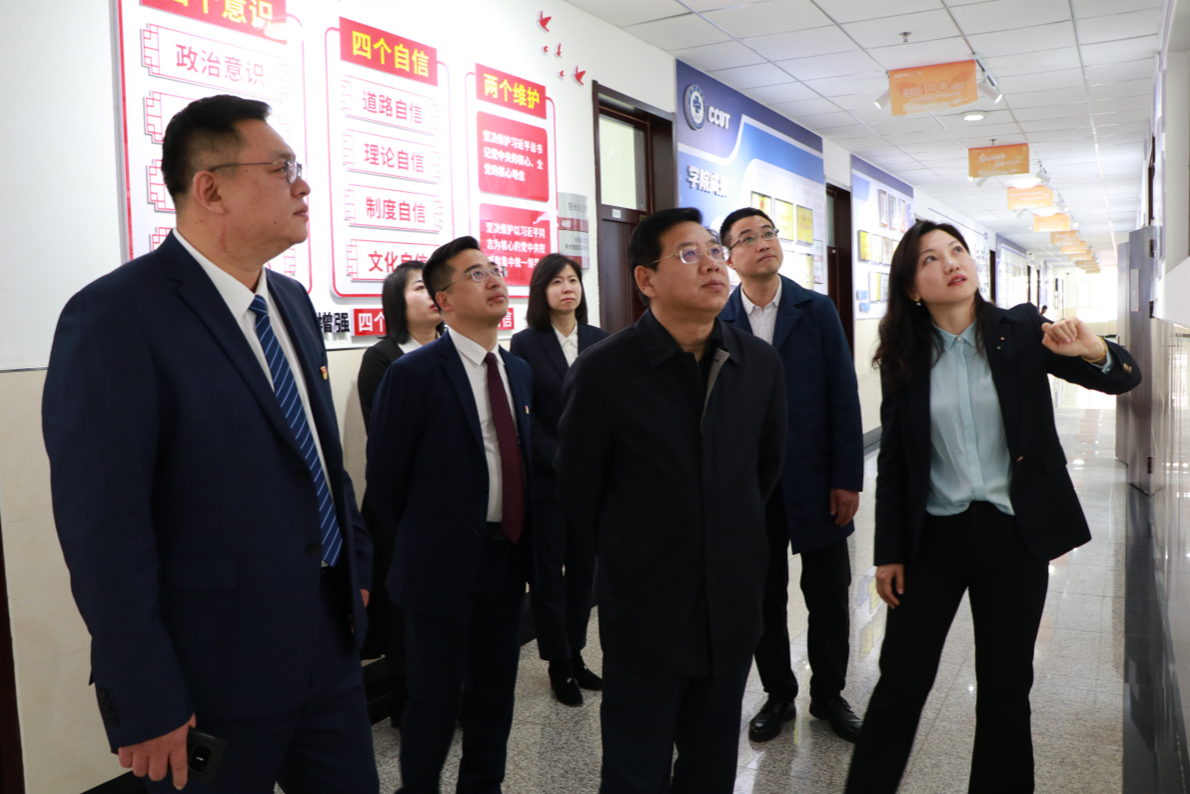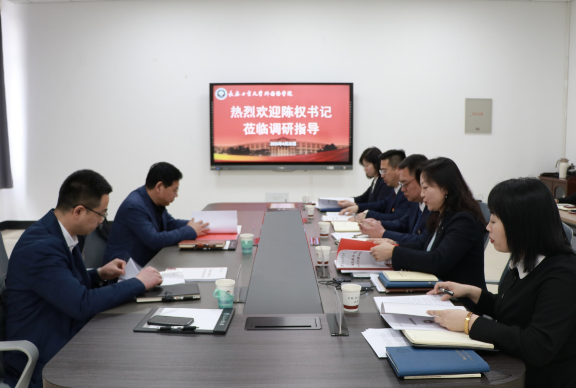 陈权在学院班子成员陪同下,实地调研了学院网络数字语言实验室、同传实验室、电台室的建设和运行以及系部设置等情况,参观了学院廊道文化,深入了解学院发展历程、团队风采及办学成果等情况,对学院在推动学校改革发展中发挥的积极作用给予充分肯定。