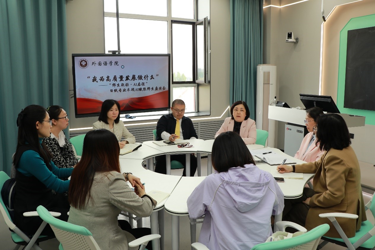 党支部书记万丽娜在发言中讲到AI技术在外语教学、科研以及就业领域的广阔应用前景,她认为“外语+AI”的复合能力将成为推动外语学科高质量发展的一个关键因素。这一观点引发师生们的浓厚兴趣,也成为座谈会热议话题之一。