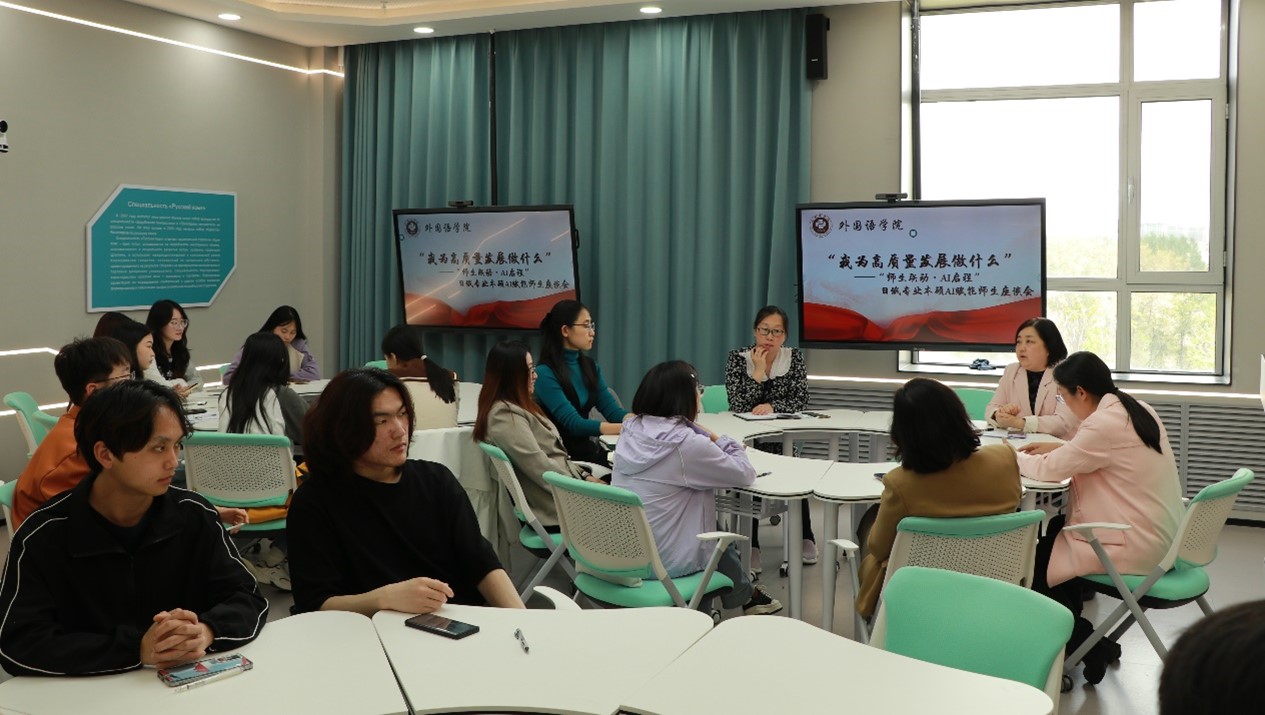 本网讯(通讯员 李雪)5月21日,学院日语系和俄语系党支部在学院374智慧教室举行“师生联动·AI启程”日俄专业师生座谈会。座谈会由党支部书记万丽娜老师主持,部分教师党员及本硕员工代表参加,共同探讨AI赋能外语学科发展新路径。