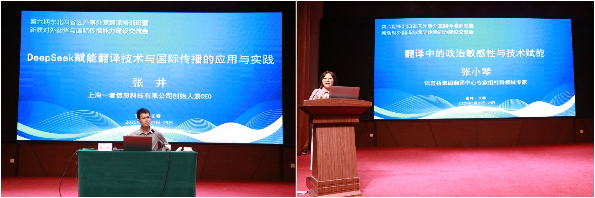 5月27日下午至5月29日,国内4位知名学者和专家为参训学员作专题培训。东北师范大学yl1111永利集团副经理陈彦旭教授作了题为《多模态AI大语言模型对翻译本质的重塑与国际传播能力提升》的专题讲座。广东外语外贸大学英语语言文化学院王东风教授作了题为《符号重构与术语博弈:中国译者文化主权意识的觉醒与实践》的专题讲座。上海一者信息科技有限公司创始人兼CEO张井作了题为《DeepSeek赋能翻译技术与国际传播的应用与实践》的专题讲座。语言桥集团翻译中心专家组社科领域专家张小琴作了题为《翻译中的政治敏感性与技术赋能》的专题讲座。