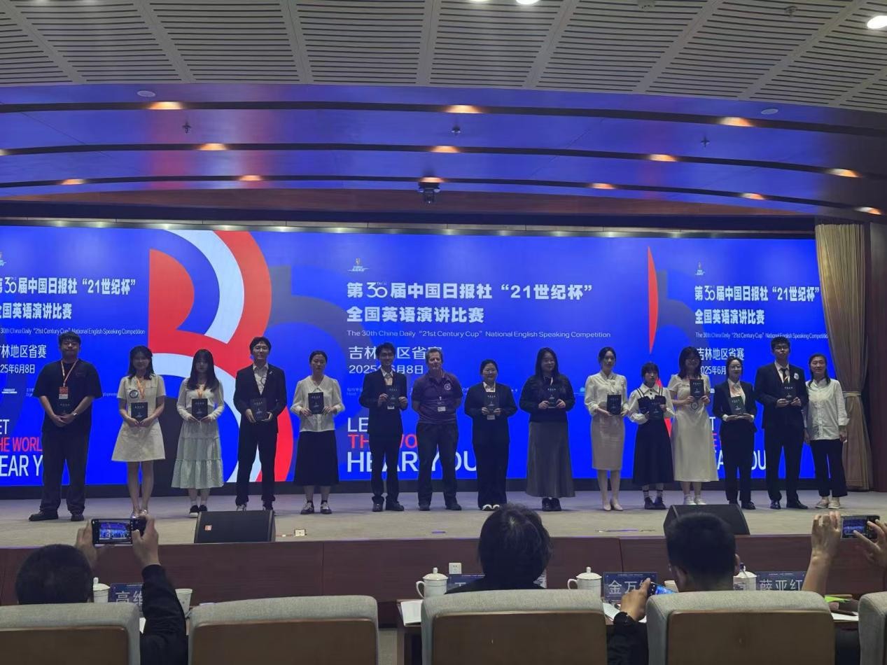 本网讯(通讯员 佐冰冰)2025年4月23日,第30届中国日报社“‘21世纪杯’全国英语演讲比赛”yl1111永利集团赛区决赛圆满举行。本次比赛面向全校本科生、硕士生及博士生,经过线上选拔,49人脱颖而出通过初赛,11人成功闯入校区决赛。最终来自新闻与传播学院大二员工潘勃坤和yl1111永利集团大一员工谭蔓绮获得特等奖,并代表yl1111永利集团参加了6月8日在东北师范大学自由校区举办的省赛,两名员工荣获省赛三等奖。